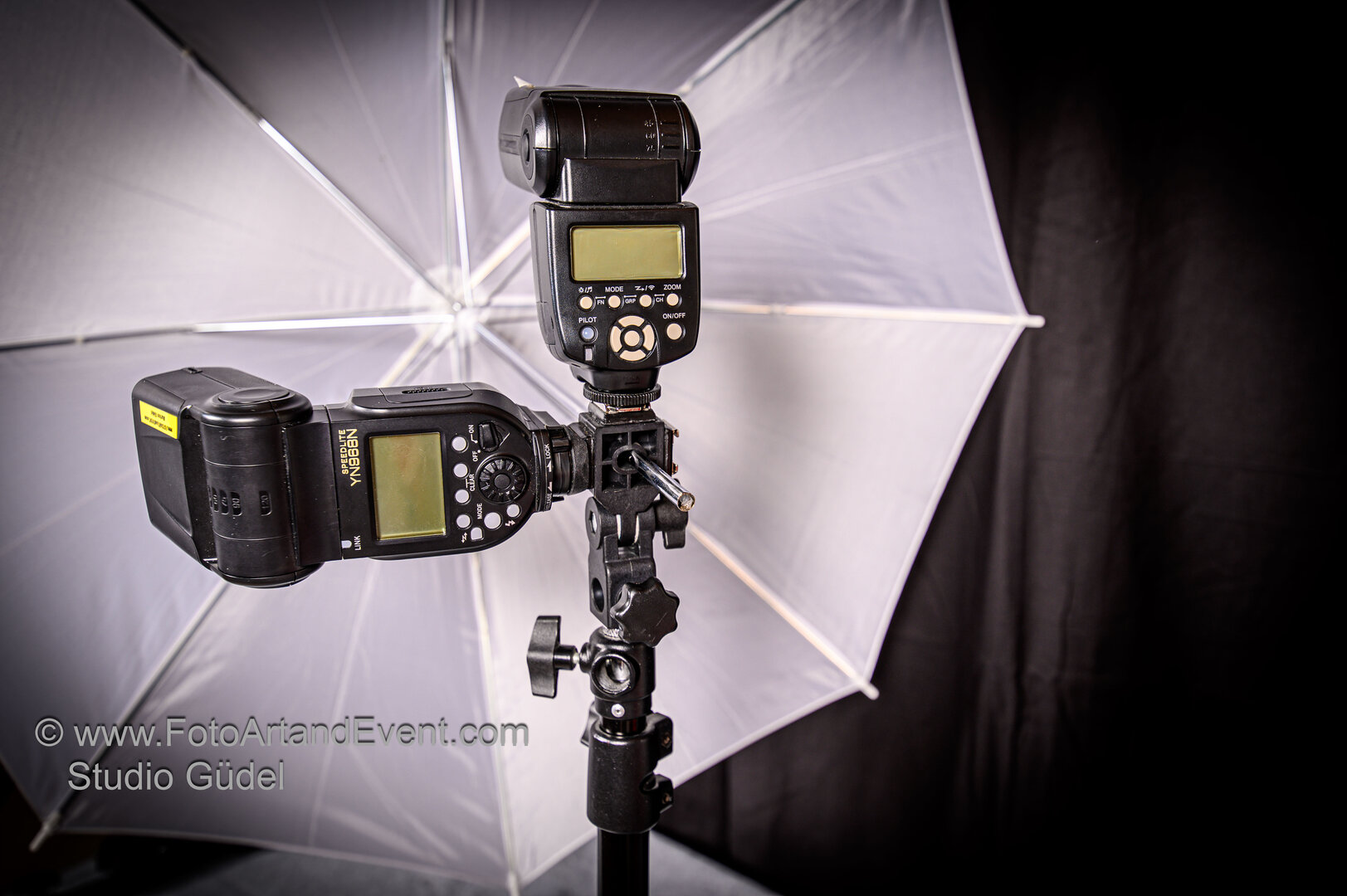 - erlaubt mit 1-3 Speedlights einen grossen Schirm auszuleiuchten